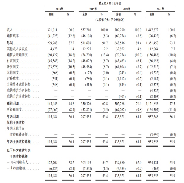 财务方面,于2018年、2019年、2020年及2021年,爱美客收入分别约为3.210亿元、5.577亿元、7.093亿元及14.479亿元。