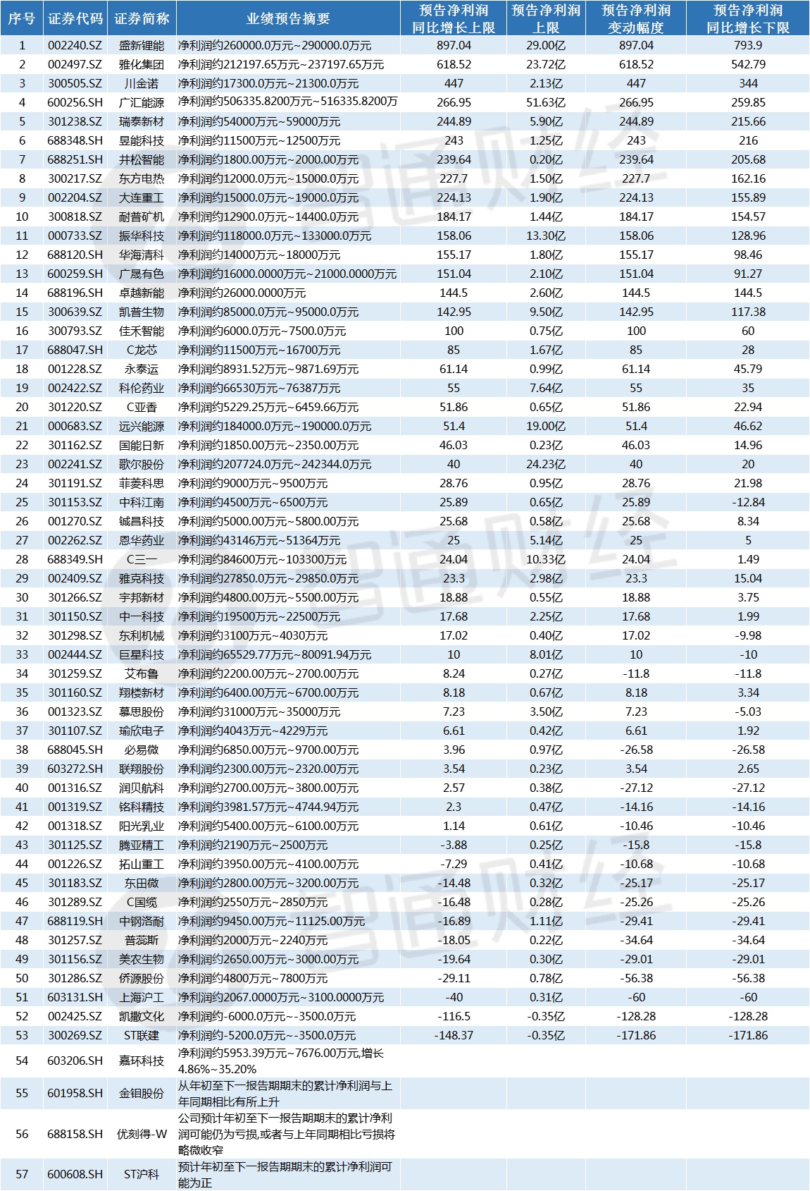 预计增幅最大的盛新锂能(002240.SZ),预计上半年净利润同比增长793.90%-897.04%,预计实现净利润26.00亿元-29.00亿元。据其一季报中披露的信息,华夏能源革新C、华夏行业景气为其前十大流通股股东。另外还有30家基金公司旗下的基金产品持有该公司股票,其中不乏富国基金、广发基金等头部基金公司。