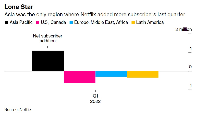 亚洲是奈飞上季度唯一一个用户增加的地区