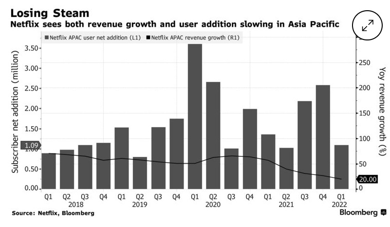 奈飞在亚太地区的收入增长和用户增加都在放缓