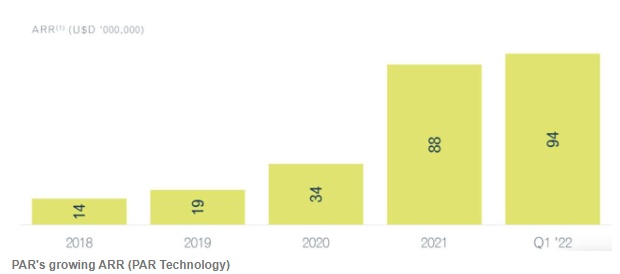 在短短几年的时间里,PAR每年的经常性SaaS收入从1400万美元增长到近1亿美元:
