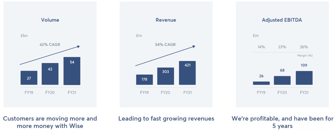 最重要的是,Wise已经盈利,并在快速增长,同时保持对盈利能力的关注。在过去的一年中,该公司的业务量增长了44%,自由现金流增长了39%。