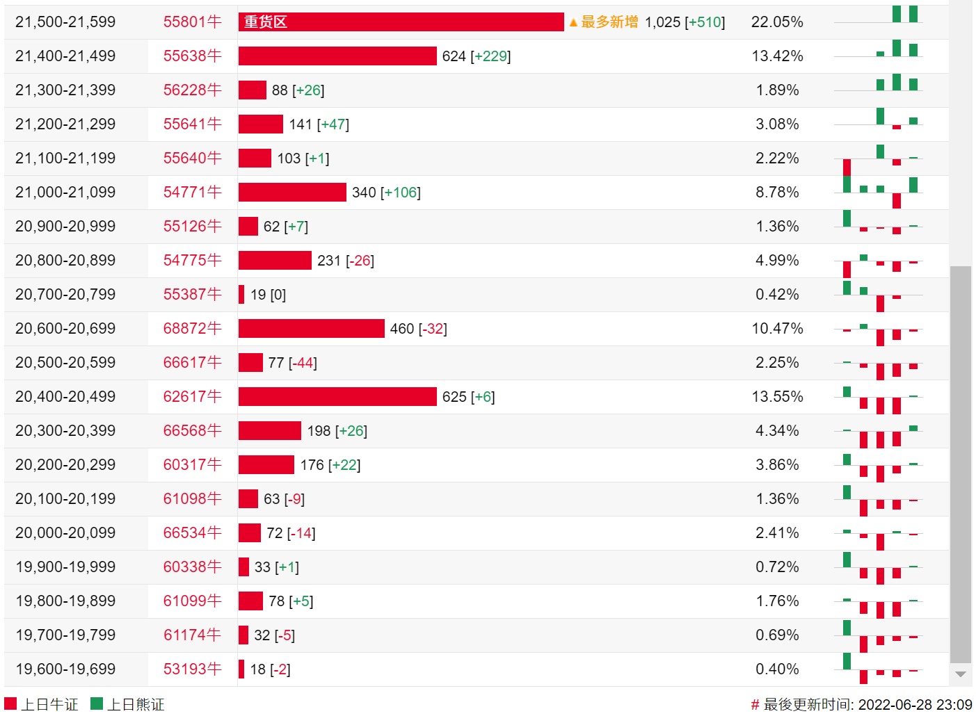 牛证街货重货区和最多新增都在21500-21599区间,该区间最新牛证数量为1025张,较上一交易日增加510张。