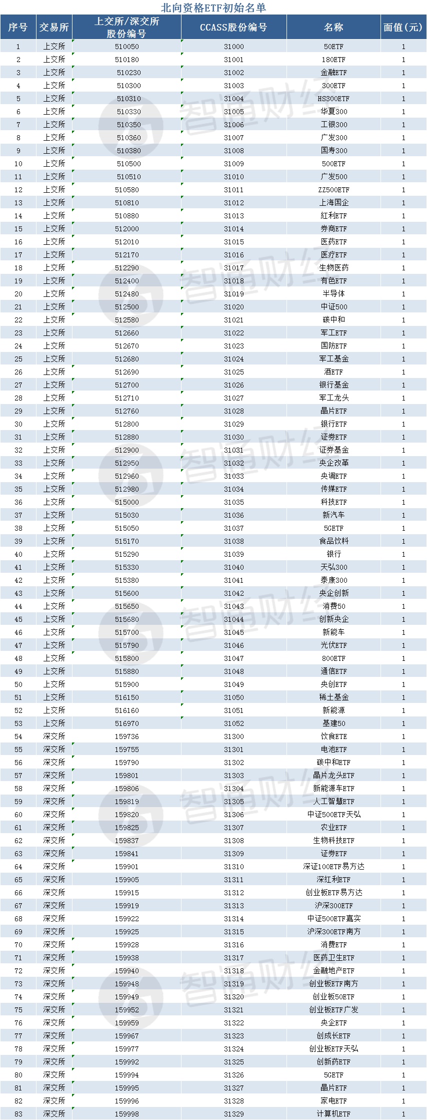 根据沪、深、港三地交易所的最新公告,首批纳入ETF通的合资格标的共有87只,其中内地投资者通过南向沪港通和南向深港通,分别可买到4只港股ETF,香港投资者通过北向沪深股通,可买到83只A股ETF。