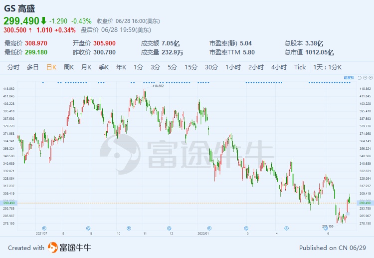 和其他股票一样,高盛遭受重创,其股价较去年11月的高点下跌30%。