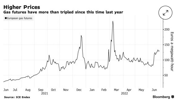 ICE Endex的数据显示,自去年同期以来,欧洲天然气期货的价格已上涨逾两倍。