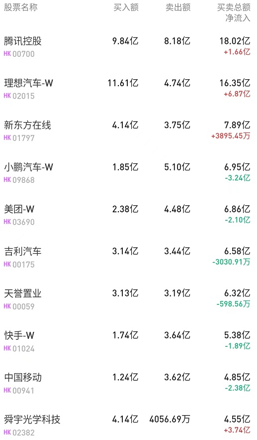 新东方在线(01797)获净买入3895万港元。消息面上,新东方创始人俞敏洪发文称,“东方甄选一热闹,大家以为新东方只做农业了。其实,新东方主要做的事情还是教育,教育是新东方的主要业务。”俞敏洪还透露,“新东方还在建第三个平台,是一个教育传播平台,就叫做新东方直播间。我希望用一年的时间,把它打造成在教育领域中带来快乐的知识传播的平台。”
