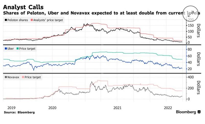 Peloton(PTON.US)、优步和诺瓦瓦克斯医药的股价预计将较目前水平至少翻一番