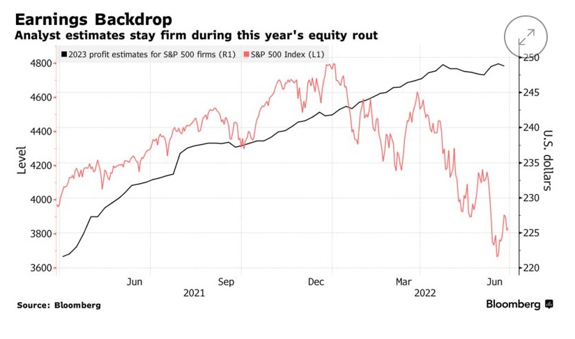 许多因素解释了股价预期与股价走势之间的巨大差距,最明显的一个原因是,那些关注股价暴跌的分析师可能只是认为,随着对经济衰退的担忧消退,这些公司的股价会反弹。在新冠疫情时期的市场,许多遭遇估值下降的股票最终成功逆袭,并达到了它们的目标价。同时,美国公司还将迎来财报季,届时或许将反映出美联储加息对消费的影响。证券分析师们也可能正在等待第二季度的业绩报告,以决定该如何调整他们的观点。Tiger Financial Partners的分析师兼首席投资官Ivan Feinseth说:“市场已经出现抛售潮流。”“我们还将迎来一大波业绩,也是投资者最为担心的。”