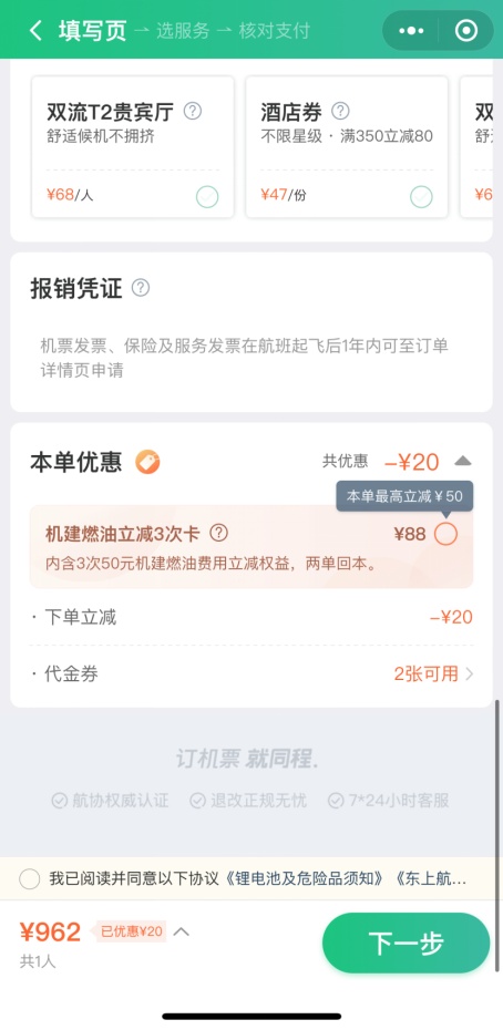 近日,国内疫情防控形势好转,暑期出行旺季来临,商务旅行、返乡探亲需求与暑期休闲度假需求叠加,机票价格也呈现上涨趋势。为帮助用户降低出行成本,同程旅行推出了一款产品——燃油费次卡。用户在预订机票时购买88元的燃油费次卡,可以分三次抵扣总计150元的机票燃油附加费。同程旅行相关负责人介绍,燃油费次卡适合出行频次较高的用户。用户通过同程旅行APP或小程序预订机票时,可以在机票下单页面中自主勾选购买。近期同程旅行还将根据用户需求,对燃油费次卡进行产品升级,为用户提供更符合消费需求的个性化出行产品。