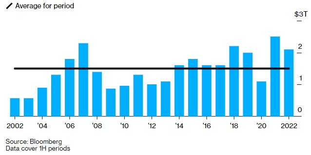法国巴黎银行的Lutkens表示:“每个人都在关注一个新世界,考虑通胀、能源供应、俄乌冲突和经济放缓等挑战,但他们并没有停下发展的步伐,而是将重心转移,转向不同类型的交易。”