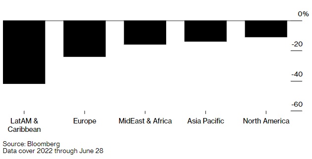 此外,银行也开始减少对大额交易的放贷,从而切断了曾推动市场繁荣的私募股权公司的融资。所有主要地区和大多数行业的并购交易都在下降,越来越多的交易完全陷入停滞。