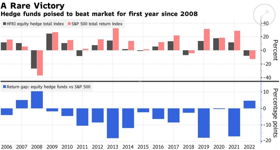 做空股市的意外之财提振了通常同时做多和做空股市的对冲基金的表现。截至今年5月,HFR追踪的指数比标普500指数高出约5个百分点。与过去13年相比,这是一个惊人的命运逆转,当时对冲基金每年都落后于市场。