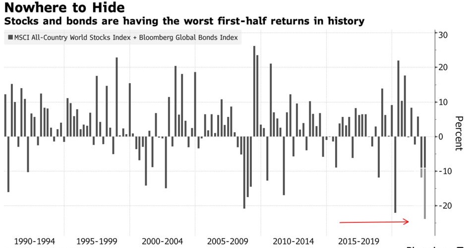 美股三大股指受加息、地缘政治等因素影响持续承压,美股刚刚结束的历史性的糟糕上半年上,纳斯达克综合指数累跌约30%、道琼斯指数跌约15%、标普500指数跌约20%,其中纳指连续录得三个月下跌,MSCI世界指数累计下跌逾20%。数据显示,自1990年以来,全球股市和债市的跌幅创下历史水平。Michele在接受采访时称:“目前无疑是我职业生涯中最具挑战性的时期。”