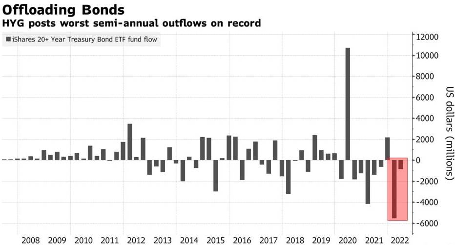 但如果Michele对软着陆前景黯淡的预测是正确的,那么股票和信贷等风险资产的表现可能会更糟。根据彭博社的数据,过去六个月,投资者已经从iShares iBoxx高收益公司债券ETF中撤出了超过67亿美元的资金,这是自2007年该ETF成立以来最大规模的半年度资金流出。