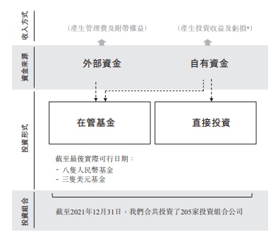 天图主要通过基金管理资金,其作为接受投资资本承诺的投资工具。截至2021年12月31日,公司的基金于总资产管理规模人民币249亿元中贡献了人民币200亿元。截至2022年6月20日,公司管理八支人民币基金及三支美元基金,其混合了外部投资者筹集的资金及公司的自有资本。