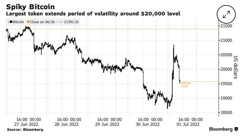 今年,在为抗击通胀而收紧货币政策的背景下,市场的流动性快速蒸发,投资者的避险情绪正快速升温。Oanda Corp.高级市场分析师Edward Moya在一份报告中写道,若股市的动荡在第三季度持续,比特币可能会受到一次更严重的暴跌影响,许多投资者担心它会跌向1万美元的区域。