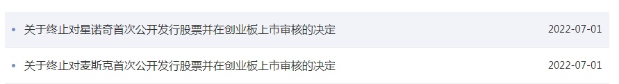 深交所:终止麦斯克、星诺奇创业板IPO审核