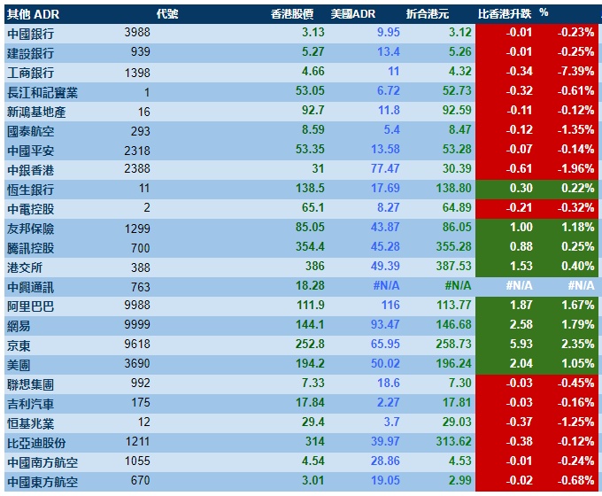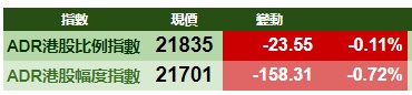 智通财经APP获悉,周五美股三大指数集体收涨,港股ADR指数下跌,按比例计算,收报21835点,较香港收市跌23.55点或0.11%。