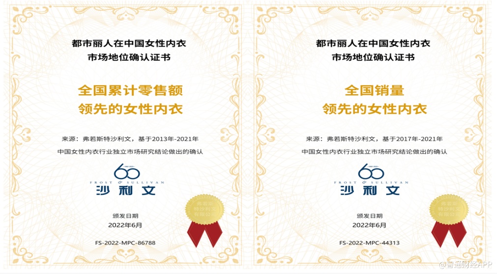 据《白皮书》,都市丽人是全国销量领先的专业内衣品牌,始创于1998年,也是中国内地首家港股上市的内衣企业。作为中国内衣行业标准参与制定者,都市丽人深研不同年龄阶段女性胸型变化及需求,为不同年龄、不同场景的女性提供舒适又有型的专业内衣,已赢得超6000万女性的青睐,并于2017年-2021年连续5年全国销量领先。都市丽人正一步一步朝着成为世界级贴身衣物的领导品牌的愿景前行。