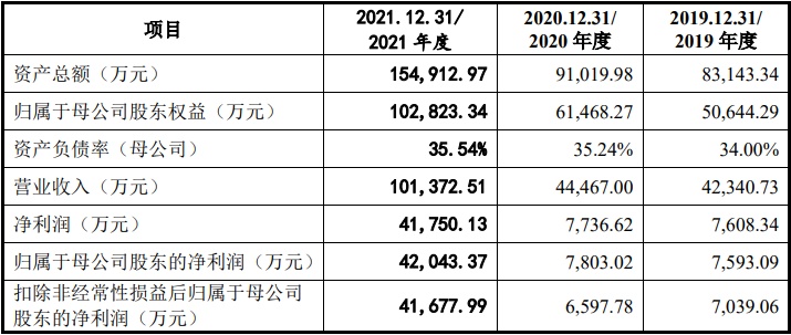 财务方面,于2019至2021年,公司营业收入分别约为4.23亿元、4.45亿元以及10.14亿元。