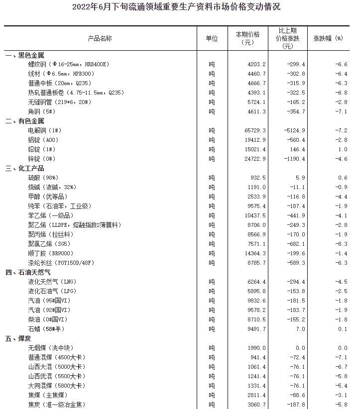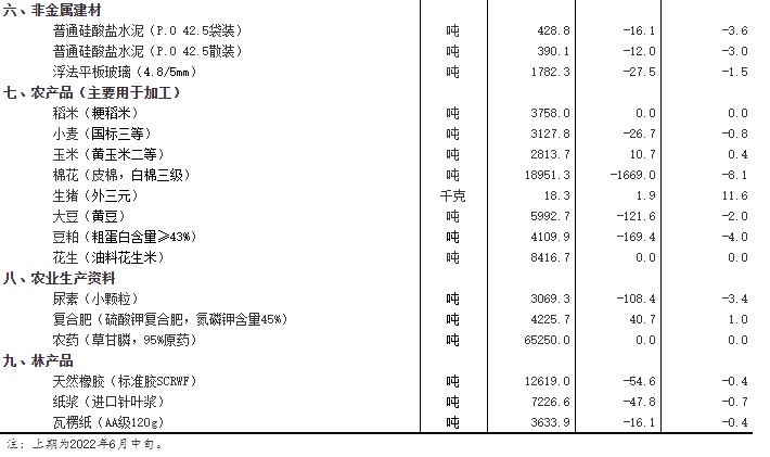 智通财经APP获悉,7月4日,国家统计局发布2022年6月下旬流通领域重要生产资料市场价格变动情况。据对全国流通领域9大类50种重要生产资料市场价格的监测显示,2022年6月下旬与6月中旬相比,6种产品价格上涨,40种下降,4种持平。其中,生猪(外三元)价格为18.3元/千克,与上期价格相比,每公斤上涨1.9元,上涨幅度为11.6%。