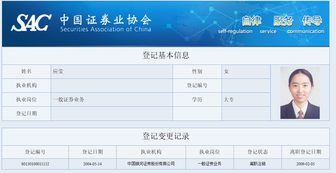公开资料显示,应莹1979年生,为大专学历,曾任职于银河证券宁波解放南路证券营业部、上海泽熙投资管理有限公司。