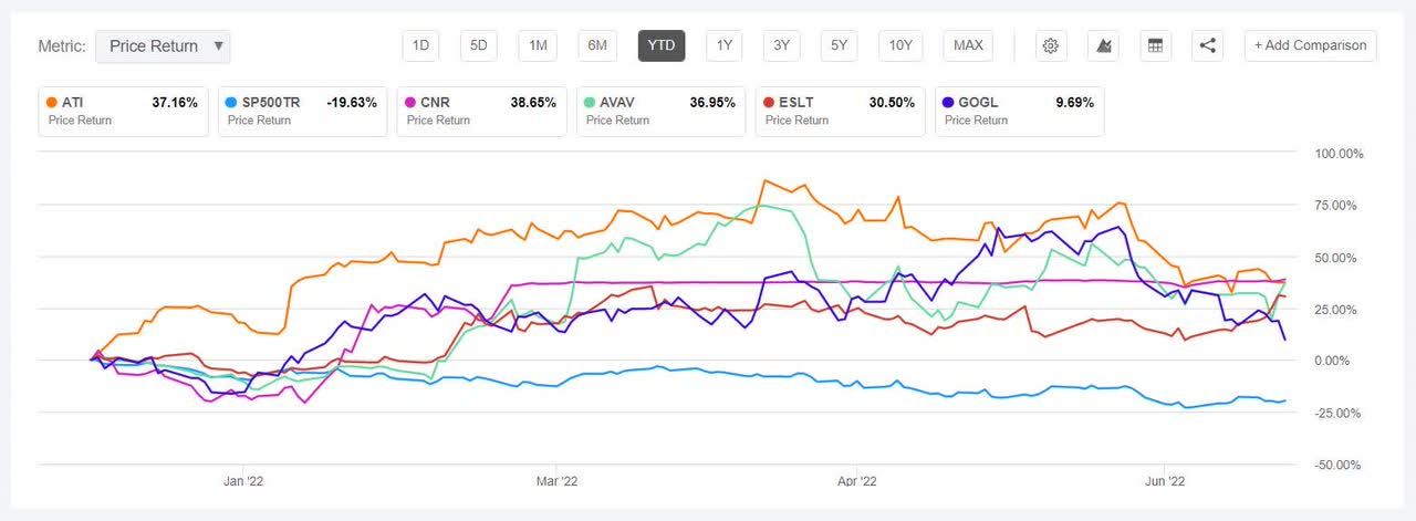 与此同时,埃尔比特系统(ESLT.US)的涨幅达31.16%。在2022年上半年,该公司获得了大约10份合同,其中一份的金额高达5.48亿美元。华尔街分析师对埃尔比特系统的平均评级为“持有”。