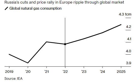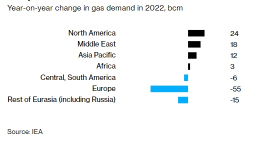 该机构指出:“目前创纪录的价格和供应中断正在损害天然气作为一种可靠且负担得起的能源的声誉。对天然气未来的增长向下修正主要是因为经济活动疲软以及从煤炭或石油转向使用天然气的情况在减少。”