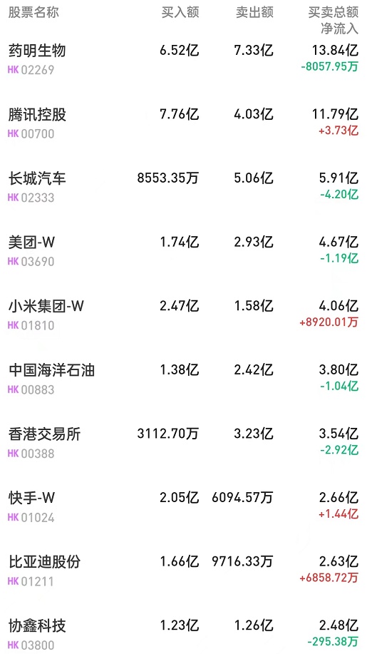 北水净买入最多的个股是腾讯(00700)、快手-W(01024)、理想汽车-W(02015)。北水净卖出最多的个股是长城汽车(02333)、港交所(00388)、舜宇光学(02382)。