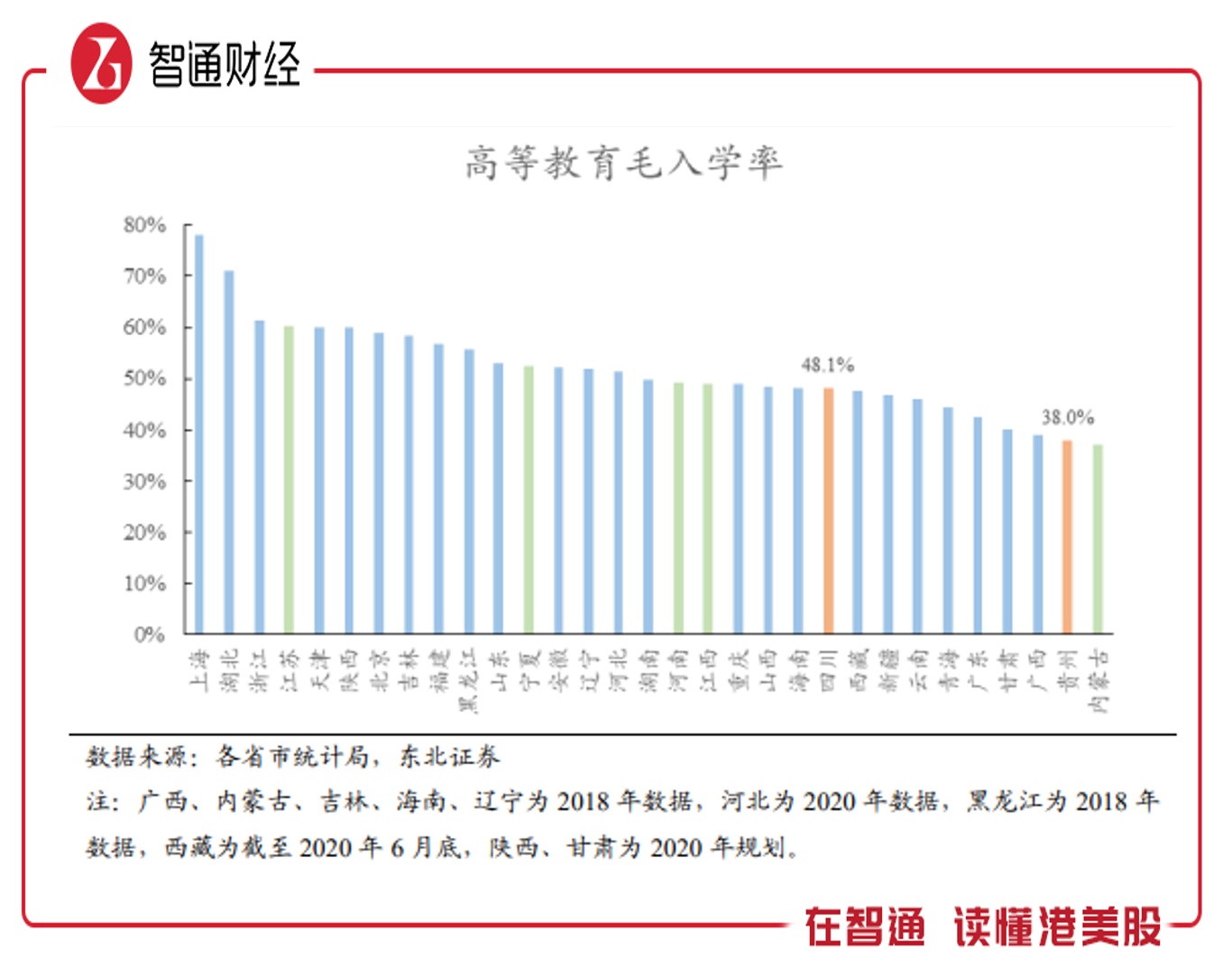 国内高等教育毛入学率每年都在提升,2019年时就超过了50%(2021年为57.8%),上海、湖北及浙江均超过60%,不过仍有超过10个省份毛利率低于全国平均水平。而该公司旗下院校多数位于高等教育毛入学率较低的地区,其中四川及贵州就分布了10所,而贵州毛入学率远低于全国平均水平,发展空间大。