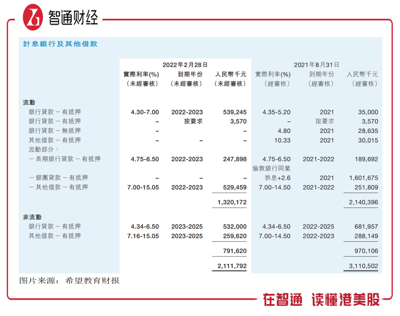 希望教育通过一连串的收购,在驱动业绩正面的同时,我们也发现了该公司负债快速增长的问题,但融资手段不同,负债呈现的风险也不同。该公司负债风险是否可控呢?从整体上看,截至2022年2月,该公司金融性负债为35.21亿元,占比总负债为30.57%,参照中教控股的46.77%仍有优化空间。