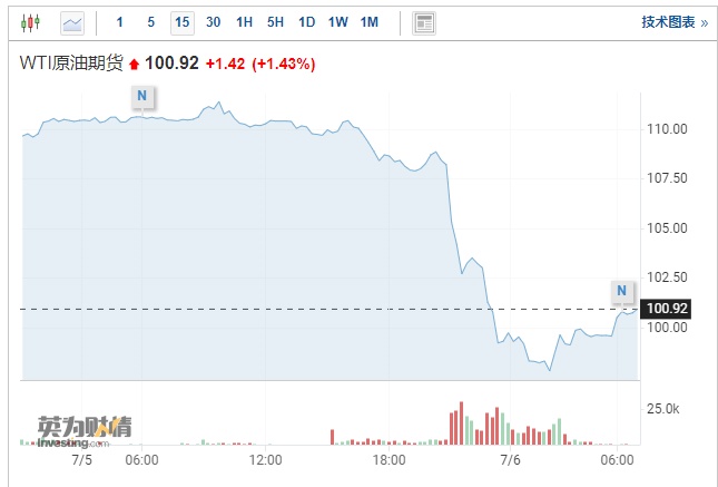 目前原油和美国汽油期货均有所回升,截至发稿,WTI原油报100.92美元/桶;美国RBOB汽油期货报3.3659美元/加仑。