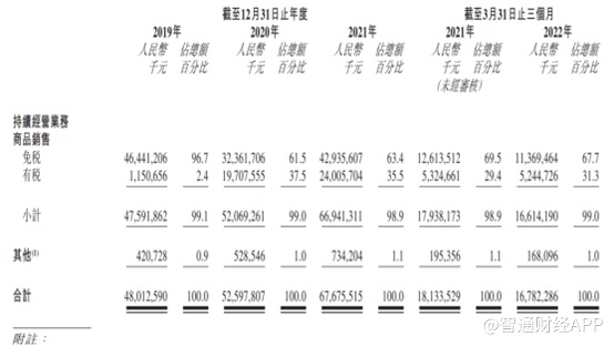 此外,由于线上业务的快速发展,有税商品销售占比也从2019年的2.4%大幅提升至2021年的35.5%。
