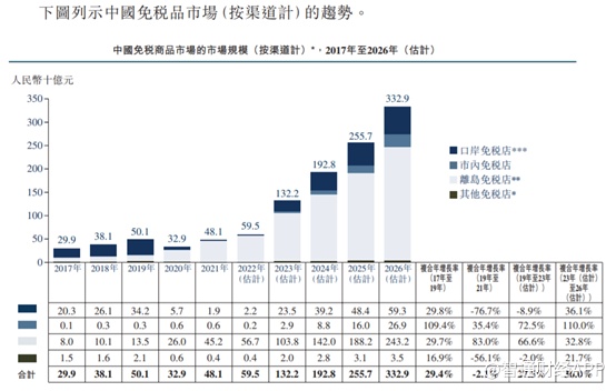 免税商品的销售目前已经成为中国的旅游零售市场日益重要的一环,2017年占中国的旅游零售市场52.2%,至2021年已上上至59.5%,预计2026年占比将高达73.8%。