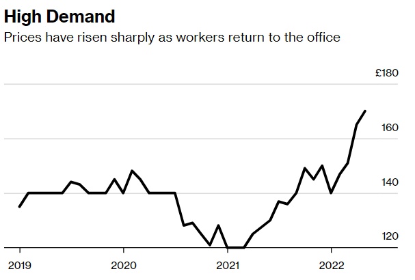 根据Inside Airbnb的数据,疫情后的房价出现反弹,每晚的房价中位值比2019年高出约25%。今年5月份,热门景点威斯敏斯特的独立房屋每晚租金价格上涨至约256英镑(305美元)。