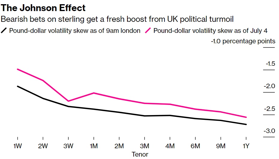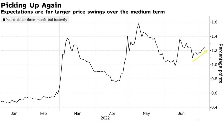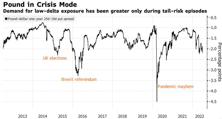 随着通胀压力持续存在,全球避险情绪突显出英国经济陷入衰退的风险,并支持英镑走弱的理由。现在,政治又一次拖累了欧元。英镑的前景一片混乱,期权交易员已经注意到了这一点。
