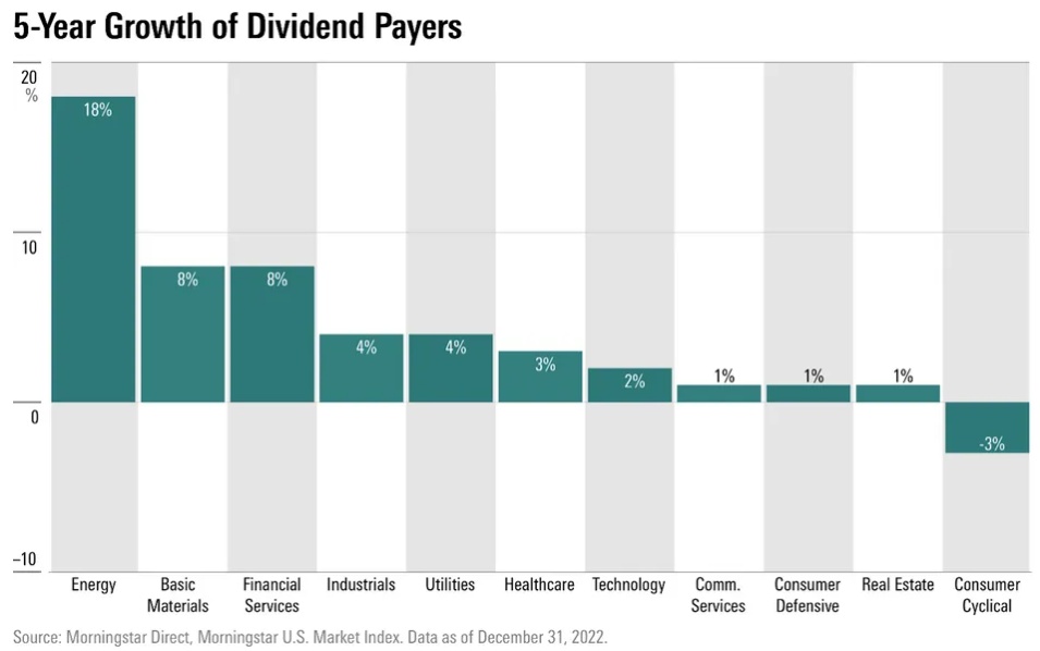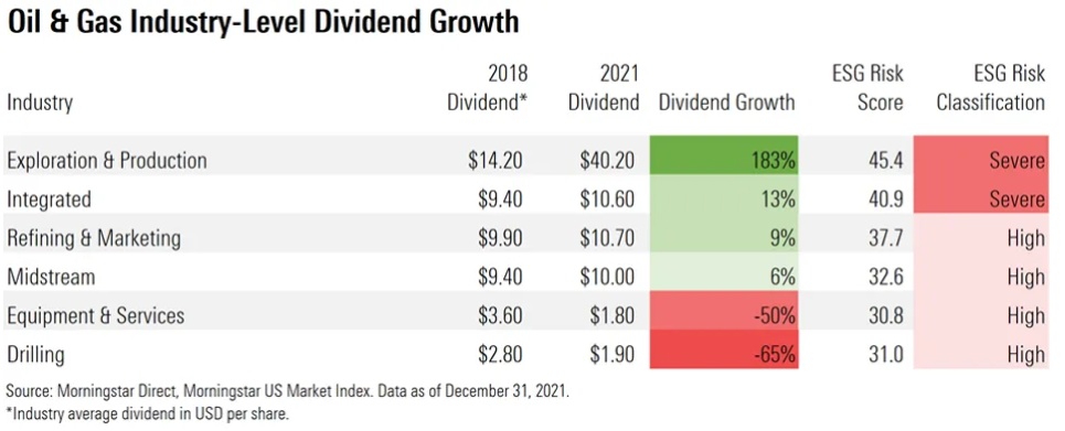 根据晨星统计,2016年,晨星美国市场指数中有58%的石油和天然气公司向其股东支付股息。到2021年底,这一数字上升到76%(增长了18个百分点),该比例比市场上任何其他板块都高。