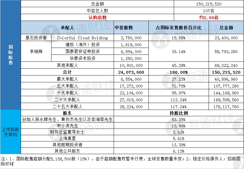国际配售申购人数未披露,认购倍数约2.09倍。