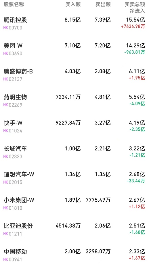 港股通(深)十大活跃成交股