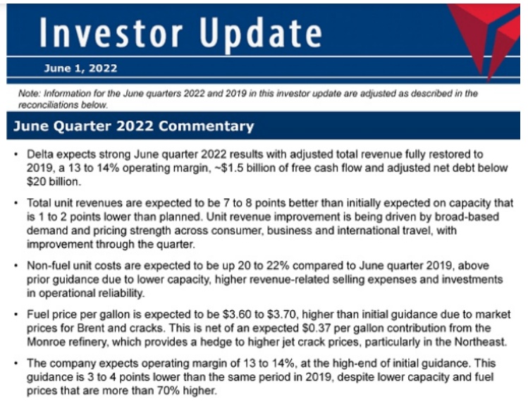 刚刚结束的第二季度是自新冠疫情爆发两年多来航空业最接近正常水平的一个季度。2022年春季,美国的一些主要国际市场重新开放,同时商务旅行的恢复,让许多人认为这将是传统/全球航空公司(如达美航空)利润复苏的指标。