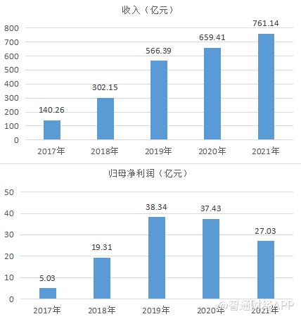 可以看出,尽管营收逐年增长,但归母净利润却在2021年大幅下滑。
