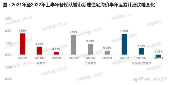 与此同时,一二线城市与三四线城市分化更加明显。根据中国房地产指数系统百城价格指数,2022年上半年一二线城市房价均有所上涨,三四线代表城市房价却由涨转跌。