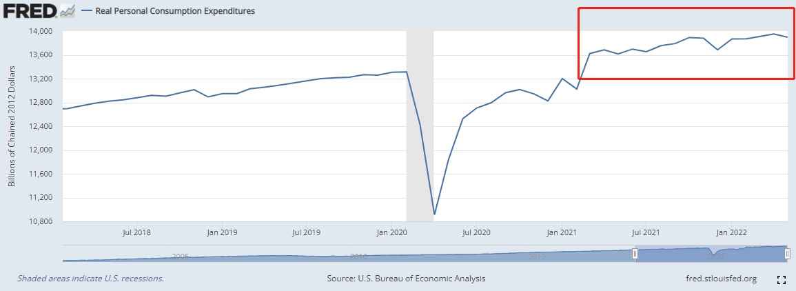 实际个人支出方面则略显悲观,5月该数据首现今年以来环比下降。作为美国经济主要推动力的消费者支出缩减,加剧了市场对美国经济前景日益增长的担忧情绪。另外,美国消费者信心指数已处于历史最低点,足以见得消费者对通胀和经济衰退的担忧正在加剧。