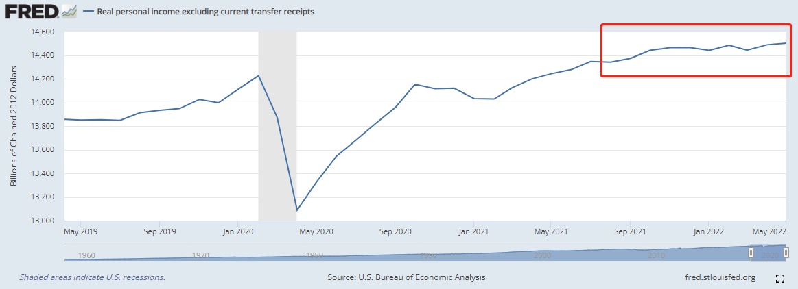 宏观经济数据方面,NBER主要参考的是实际GDP与实际GDI,第一季度美国实际GDP已出现环比下滑,若今年第二季度也出现环比下滑,将被定义为“技术性”经济衰退,不过这并不NBER参考的唯一要素。GDI(国民总收入)自2020年第二季度以来持续呈现环比上行趋势,但2022年Q1呈现出环比增幅明显放缓。GDI统计指标已成为一些华尔街分析师衡量经济状况的流行指标,它基于特定时期该国生产的所有商品和服务所产生的所有资金,包括工资、利润和税收等,计算公式和数据源较GDP略有不同。