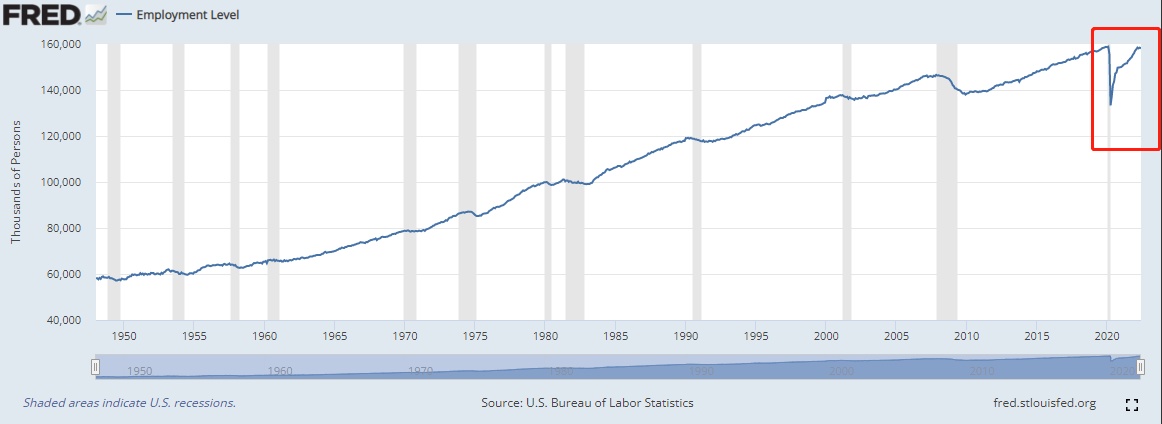 美国整体就业水平则已从2020年新冠疫情的谷底实现超级大逆转,目前已非常接近新冠疫情之前的水平。