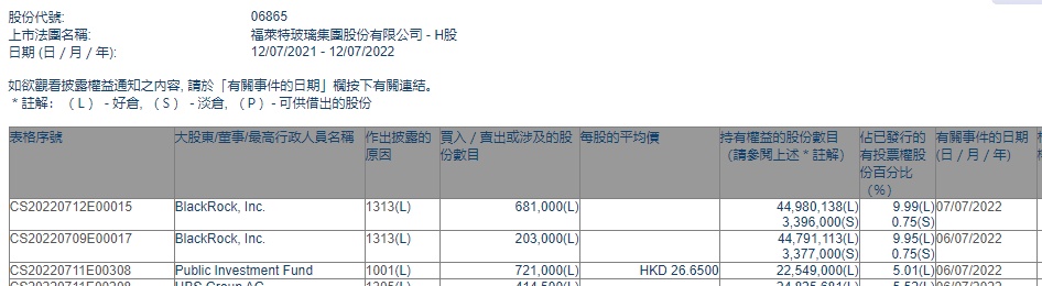 智通财经APP获悉,香港联交所最新资料显示,7月6日,Public Investment Fund增持福莱特玻璃(06865)72.1万股,每股作价26.65港元,总金额约为1921.47万港元。增持后最新持股数目为2254.9万股,最新持股比例为5.01%。