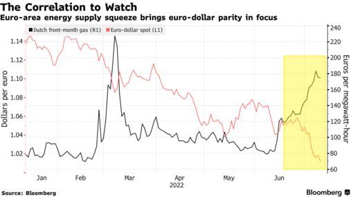 这种情况提振了美元,导致欧元兑美元跌至20年来的低点。现在货币市场密切关注欧欧洲天然气价格的走势,越来越多的市场参与者将TTF基准荷兰天然气期货的表现视为最近几周影响欧元走向的关键因素。