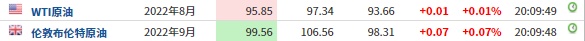 3. 截至发稿,WTI原油涨0.01%,报95.85美元/桶。布伦特原油涨0.07%,报99.56美元/桶。