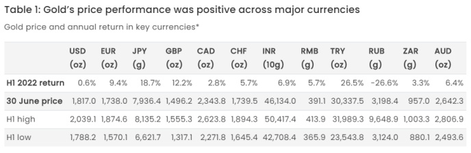 并且,尽管上半年美元令黄金承压,但WGC统计数据显示,同时也支撑了以许多其他货币计价的黄金表现,如欧元、日元和英镑等。